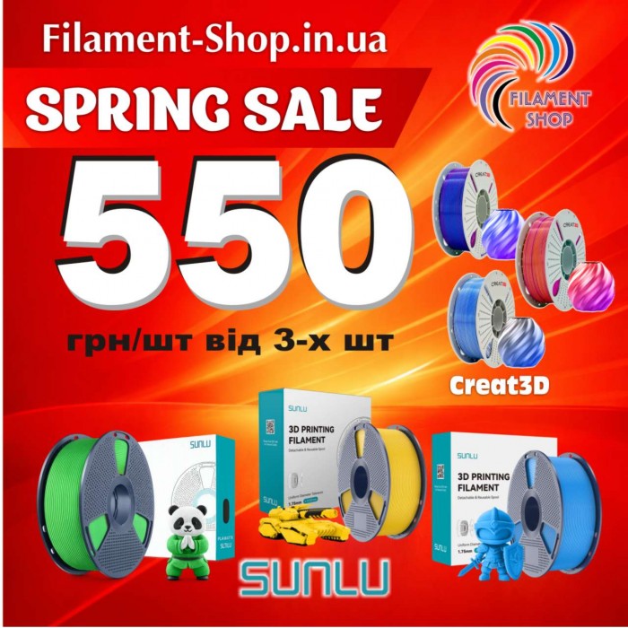 ВЕСЕННЯЯ РАСПРОДАЖА! ТРИ по 550 !!! Акция от SUNLU и Creat3d ! Всего 550 грн за катушку - при заказу 3-ох штукКак заказать: 1️⃣ Оформи заказ2️⃣ Отправь номер заказа в Viber с пометкой «мне 3×550»3️⃣ Получи подтверждени...